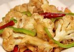 散菜花、带皮五花、蒜4-5瓣、干辣椒2-3根。食用油、酱油、盐适量、糖少许、孜然粒一小把。