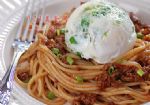 鸡蛋2个、芹菜叶适量、洋葱少许、盐、黑胡椒粉。意大利面、番茄肉酱。