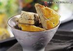 低筋面粉200克、泡打粉2小勺、细砂糖50克、盐1/2小勺、全蛋液50克、橙汁160毫升、黄油80克、葡萄干80克。