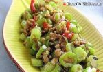 肉馅:涪陵榨菜两包、梅猪肉一块、料酒、十三香、盐、鸡精、葱花、姜末。
