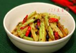 樱玉豆腐三条、虾仁几个、青椒一个、黑木耳一点。