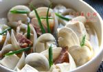 菊花叶二两、肉糜半斤、藕半节、饺皮一斤、葱姜碎、鸡蛋一个。