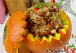 南瓜一个、排骨适量。糯米小半碗、姜。油、盐、鸡精。
