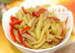 西瓜皮、猪瘦肉、盐、料酒、酱油、水淀粉、白糖、姜末。