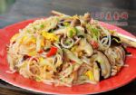 茄子(紫皮、长)600克、火腿30克、青椒15克、柿子椒15克。豆瓣20克、姜10克、大蒜(白皮)5克、大葱10克、酱油10克、白砂糖3克、淀粉(玉米)15克、香油2克、猪油(炼制)...