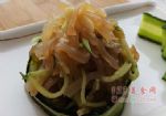 蜇头600克、黄瓜50克、胡萝卜50克、香菜1棵、苦菊50克、小米椒3个。味极鲜生抽2勺、蚝油1勺、香醋1勺、苹果醋2勺、糖5克、红油5克、花椒油5克。