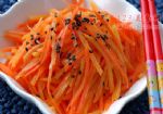 红薯、胡萝卜、熟黑芝麻少许。盐、白糖、鸡精、香麻油。