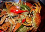 螃蟹、面粉、蒜片、干辣椒、洋葱、蘑菇。盐、胡椒粉、咖喱粉、椰奶。