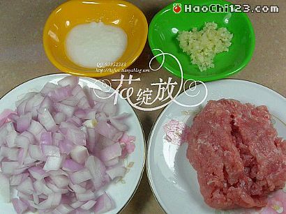 2、锅中放少量油烧至四成热,下肉末炒散至表面发白,盛出待用。
