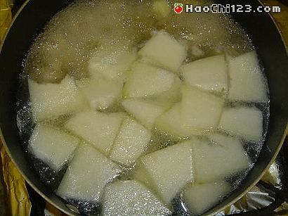 4、中火煮10分钟,下切好的冬瓜片。