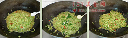 5、西葫芦在炒的时候会有很多的水分出来,如果不喜欢可在切好之后用少许的盐腌制一下后轻轻挤出一些水分再炒,但是我一般不这样做,因为我很喜欢用里面的汁来拌饭吃,而且要最大限度地将营养留住不是?[LaoYanHuo.com]