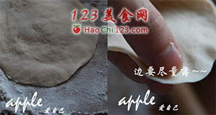 2、取馅儿放到皮中间,新手可以少放点儿。
