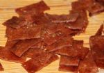 7、肉脯受热后,会由大变小,颜色变白后,就可以翻面了,整个烤制过程中,隔几分钟就要翻面一次,这样会使肉脯受热更均匀。