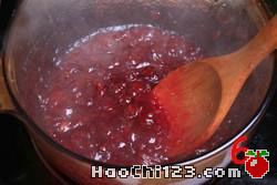 3、大火煮开山里红变软。不要盖盖不然会颜色不美啊。