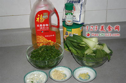 1、香葱洗净切碎,油菜掰开洗净。