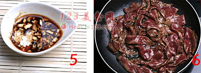 6、热锅温油将肝滑熟,将肝倒在碗里。