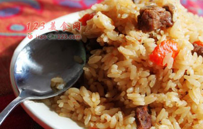 贴士:饭跳闸后再焖十分钟,然后开盖搅匀。看这一锅手抓饭呀,香喷喷的。[LaoYanHuo.com]