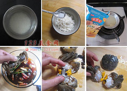 4)、大闸蟹要整只剖开,让它趴在糯米上蒸制,使糯米能吸收流出的蟹黄。[LaoYanHuo.com]