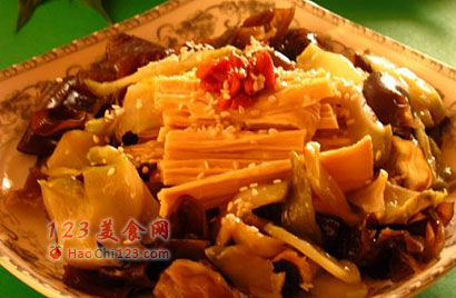 7、所有食材放入大碗中,加苹果醋、盐、麻油、少许糖(很少量,不能尝出甜味)和少许鸡精拌匀,装盘时上面撒上白芝麻即可。