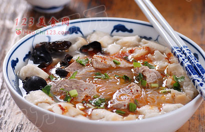 4、馍掰碎成约小指尖大小的小粒,放在碗里,粉丝,木耳过水焯熟,放入碗中,浇上热的纯羊汤,撒盐和白胡椒粉,上面放切块的羊肉,撒切碎的青蒜香菜,浇上辣椒酱或者辣椒油即可(也可以把汤锅中加入一碗羊汤和等量清水,然后放入掰好的馍粒,大火煮1-2分钟,再放入木耳和粉丝煮1-2分钟,最后调入盐和白胡椒粉,盛入碗中,放上切块的羊肉,撒青蒜和香菜,然后放一坨辣椒即可)。