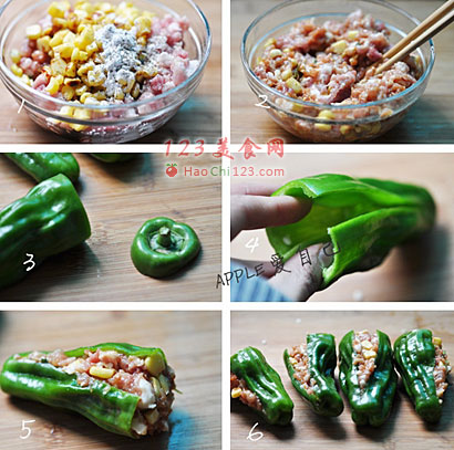 1、青椒的处理看个人喜欢吧,我喜欢直接去蒂,剪个口子,塞肉好操作些。