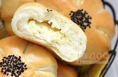 9、翻面后包入柠檬芝士馅,为什么要翻面呢,因为要把光滑的一面露在外面,这样烤出来才光滑啊。