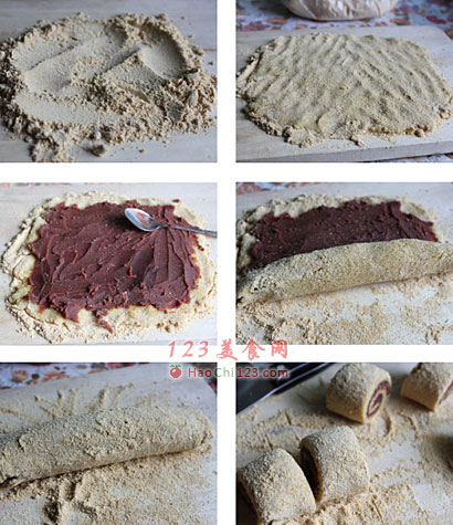 10、卷起来,再适量地撒上一些熟黄豆粉。