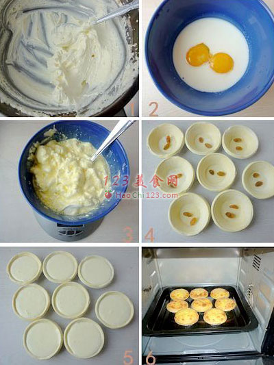 5、将挞水倒入挞皮中8分满。