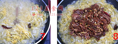 7、倒入清汤慢慢炖8分钟,直至酸菜的味道开始扑鼻。