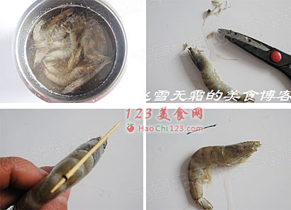 2、将虾的长须,以及多余的部分剪去。