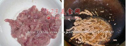 1、肉丝喂口时放色拉油,炒时不粘锅。