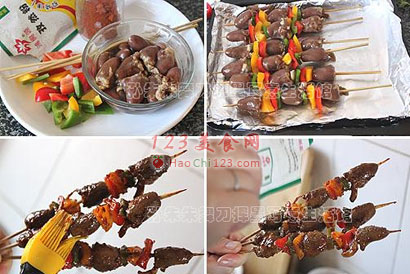 1、鸡心不像羊肉串,不容易入味,所以最好刷上辣酱(只是一点点的微辣)烤才有味道。