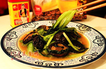 2、超过加入2茶勺色拉油,烧至6成热加入香菇炒香,并盐巴调味。随后放入洗好的脱裤菜翻炒,根据口味加入适量的盐巴。2-3分钟后脱裤菜就会变软,体积变成原来的一半,当变成原体积的1/3时淋入少许白糖,鸡精翻炒出锅。