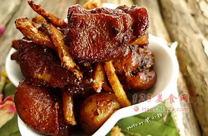 3、最后一定要把锅里的水分煮干,爆香鸭肉,才好吃。