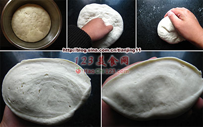 3)、发酵完成后,面团要尽可能的多揉一揉,完全排出空气。这一步很关键,关系到面饼的内部组织。用分享的小方法(见11-12)既能节省时间,效果又好。