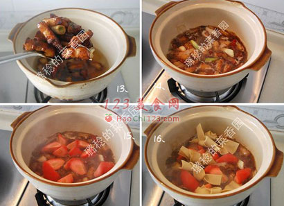 18、味极鲜酱油、草菇老抽各适量,前者提鲜,后者上色。盖上锅盖,转小火慢炖30分钟。