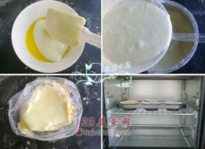 14、再把混合好的糊倒入面糊中,混合均匀。