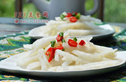 4、这道菜,到底是清炒还是凉拌都不得而知,但是我一听这搭配吧,觉得实在是好,特别适合现在初秋的季节,因为梨子和莲藕都有清热去燥的作用,能润肺凉血,而且老幼皆宜。至于做法我是自己瞎琢磨来的,想着既然是清热去燥,凉拌比清炒应该要更好一些。[LaoYanHuo.com]