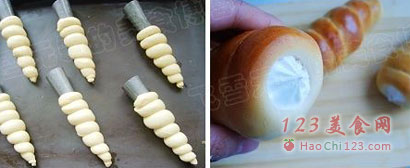 3、经过制作这款面包发现,原来大部份人还是喜欢将奶油夹在面包里吃滴。有了这样一个轻松的小模具,这个愿望就可以轻松完成。如果没有模具的话,可以将面包做好后,切一半,夹入奶油馅。[LaoYanHuo.com]