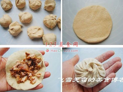 4、全麦面粉做的包子虽然吃起来不如普通面粉来得松软。但更加有营养。所以我又做了些卤肉包。卤肉本身就是要多买些肉来做,才比较好做。而且需要时间长一点,入味,肉才好吃。才是最香的。[LaoYanHuo.com]