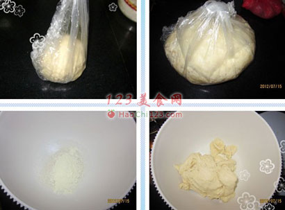 2、揉好的面团排气,分成二等份,分好揉圆放一边松驰15分钟。