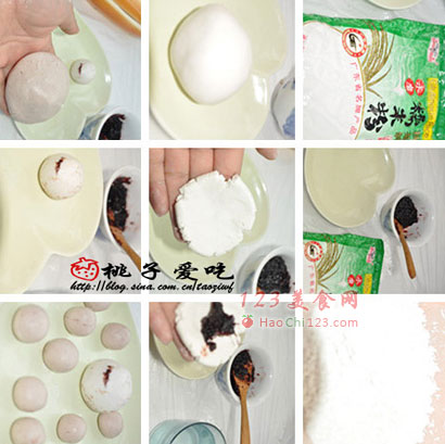 5、其余的我就在糯米粉团里加了一勺洛神花果酱,团成小小实心的糯米团。