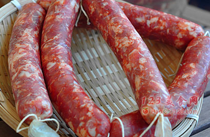 3、香肠调味时,白酒必不可少,起防腐提香的作用,料酒不可替代,香肠灌好后,用温水或纯净水冲洗一下肠衣表面,也起到防腐作用,肠衣上的气泡一定要用针戳洞排气,否则极易变质。