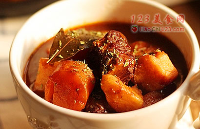 7、继续再炖1个小时,至汤汁浓稠,牛肉,红萝卜都软烂。加盐和黑胡椒调味即可。