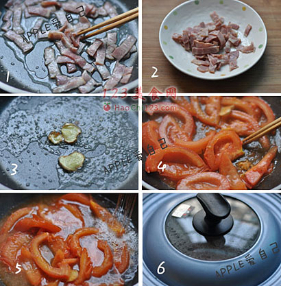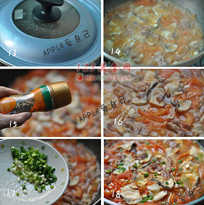 4、番茄分两次放,第一部分要炒出番茄汁为好哈。