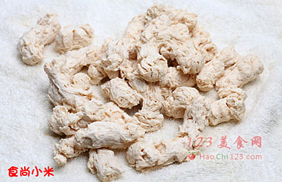 2、大概泡两个小时左右,彻底将干素鸡泡发,将素鸡用干净毛巾攥干。