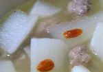 4、白萝卜切滚刀块,待排骨炖至七、八成的时候,放入萝卜块再一同炖二十分钟,加盐调味即可。