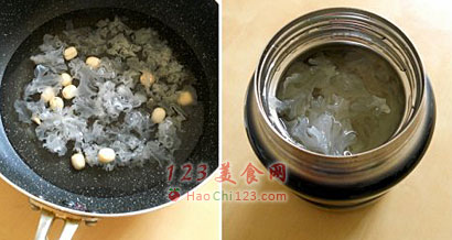 5、这款红枣银耳莲子羹,就是借助这个保温瓶来做的,以往煮银耳汤,都需要煮半小时到40分钟,现在借助保温瓶的密封保温功能,可以大大缩短时间。晚上睡前将材料加水煮开后,小火再煮15-20分钟,然后立刻倒入膳魔师保温瓶,拧紧盖子,放置几个小时,第二天一早就有银耳汤喝啦![LaoYanHuo.com]