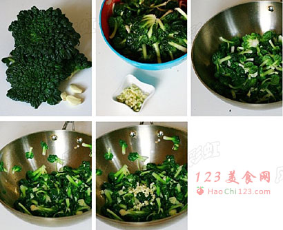 4、倒入蒜碎,再翻炒几下使蒜出香味即可关火。