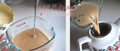 7、另外一个需要注意的就是冲调的黄金比例。港式奶茶的黄金配比是:黑白淡奶:茶汤=1:3。例如:100ml的黑白淡奶+300ml的茶汤+20克的糖(一般400ml的奶加20克的糖)。鸳鸯奶茶的黄金配比是:茶、奶、咖啡各占三分之一。当然可以根据自己的喜好适当调节的,毕竟公式只是个参考,口味应该以人为本。给出一个基本比例,供各位参考。[LaoYanHuo.com]